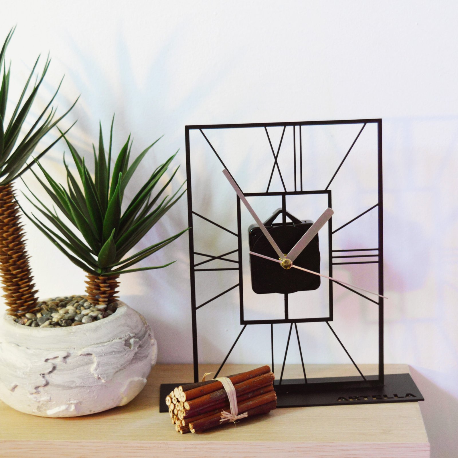 Vigyen egy csipetnyi luxust és egyediséget otthonába ezzel a gondosan készített, fémből készült asztali órával, amely garantáltan magára vonzza a vendégek figyelmét. ✨